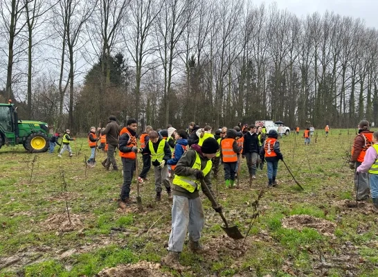 Leerlingen basisschool De Kiem maken Hertigembos 1.000 bomen rijker